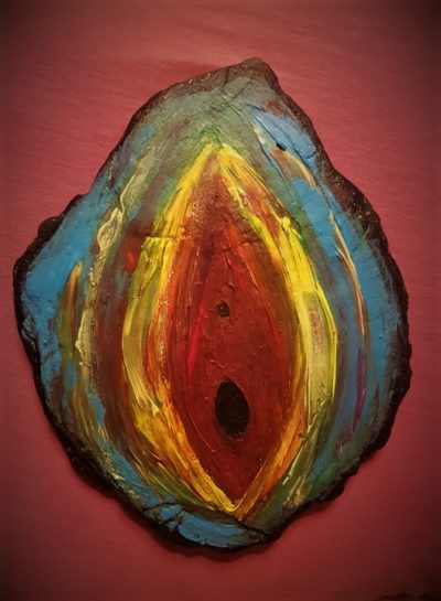 Yoni - Źródło Obraz namalowany na kamieniu za pomocą akryli. Budzenie się Kobiecości, wewnętrznej Bogini.Taki proces rozpoczął się