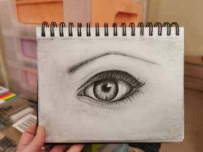 Pierwszy raz naszkicowałam oko ludzkie, wcześniej malowałam je za pomocą farb i kredek. Jestem zadowolona z efektu chociaż nad