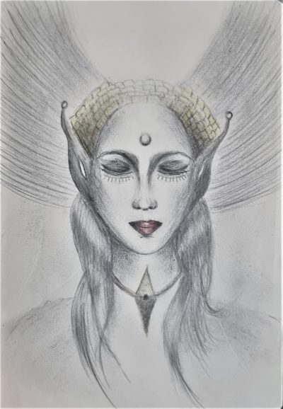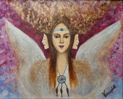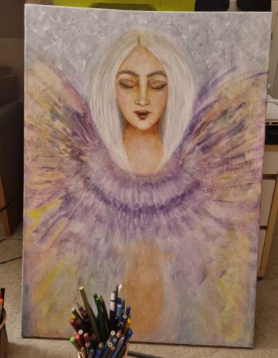Anioł Telepatii / Transmisji Akryl na płótnie Malując ten obraz zainspirowana byłam zjawiskiem telepatii, doświadczam jej od lat.