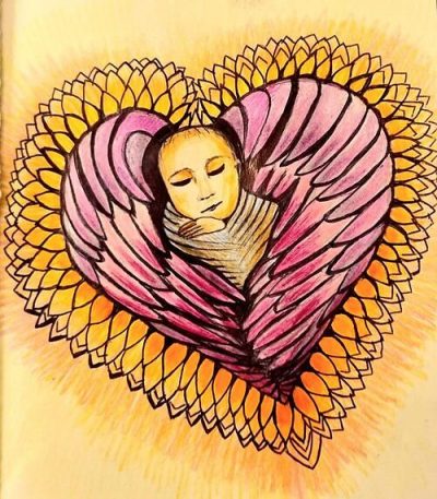 Anioł Monadowy - Akryl na płótnie OGRÓD WDZIĘCZNOŚCI . Dziękuję Matko Ziemio, Że przyjęłaś, mnie do swego łona.