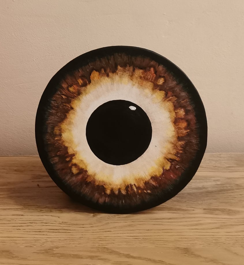Mój Synek chciał abym namalowała jego oczko, nosiłam się z tym zamiarem długo aż w końcu powstało unikatowe, piękne dzieło wszechświata, wyrażone w jego spojrzeniu. Kiedy je malowałam czułam duże wzruszenie, jakbym małowała źródło, i tak w istocie jest, bo wszystko jest jego przejawem, wszystko na czym skupimy strumień sowojej śwadomości jest właśnie tym co ma zostać urzeczywistnione.