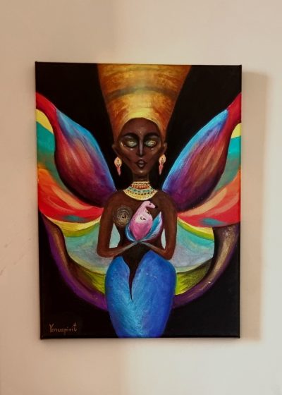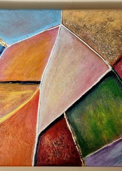 Kiedy malowałam ten obraz, pomyślałam sobie, że życie ludzkie składa się z wielu takich kolorowych puzzli, które pozornie nie